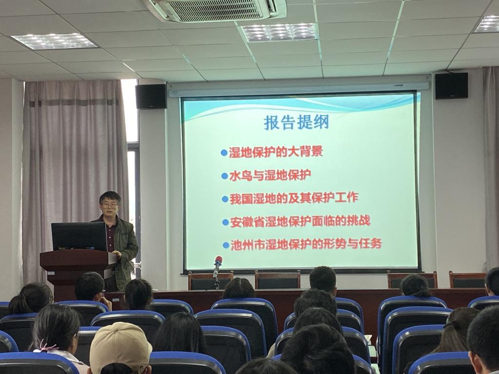 周教授就《安徽湿地保护修复模式的探索与实践》做了详细讲解。具体介绍了什么是湿地,湿地的类型和生态过程,湿地的重要性和保护,以及国际国内湿地保护大背景。报告还就安徽湿地的现状,深入探讨了安徽湿地保护面临的挑战和保护任务的艰巨性。报告结束后,公司与会师生与周教授就湿地保护问题进行了探讨和交流。(tyc5997太阳集团 陈敏敏)