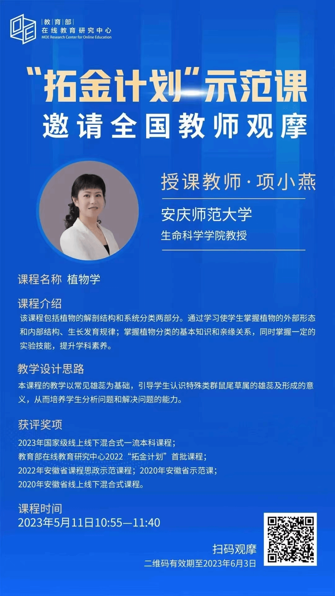 本着以员工为中心的理念,项小燕教授课程团队借助中国慕课大学平台和雨课堂教学平台开展《植物学》课程的线上线下混合式教学。通过“理论、实验、实践和学科竞赛”相结合的方式进一步达到人才培养目标的。在团队的共同努力下,项小燕教授团队主讲的《植物学》课程获批第二批国家级线上线下混合式一流本科课程及2022年首批教育部在线教育研究中心“拓金计划”课程。此次直播意在推广国家级金课建设及应用的优秀经验,大力拓展国家级金课的示范引领效应,助力优质教学模式的相互借鉴,广泛开展智慧教学经验交流,培育更多优质课程,进一步提升人才培养质量。(撰稿、摄影:项小燕; 审核:吴彦)