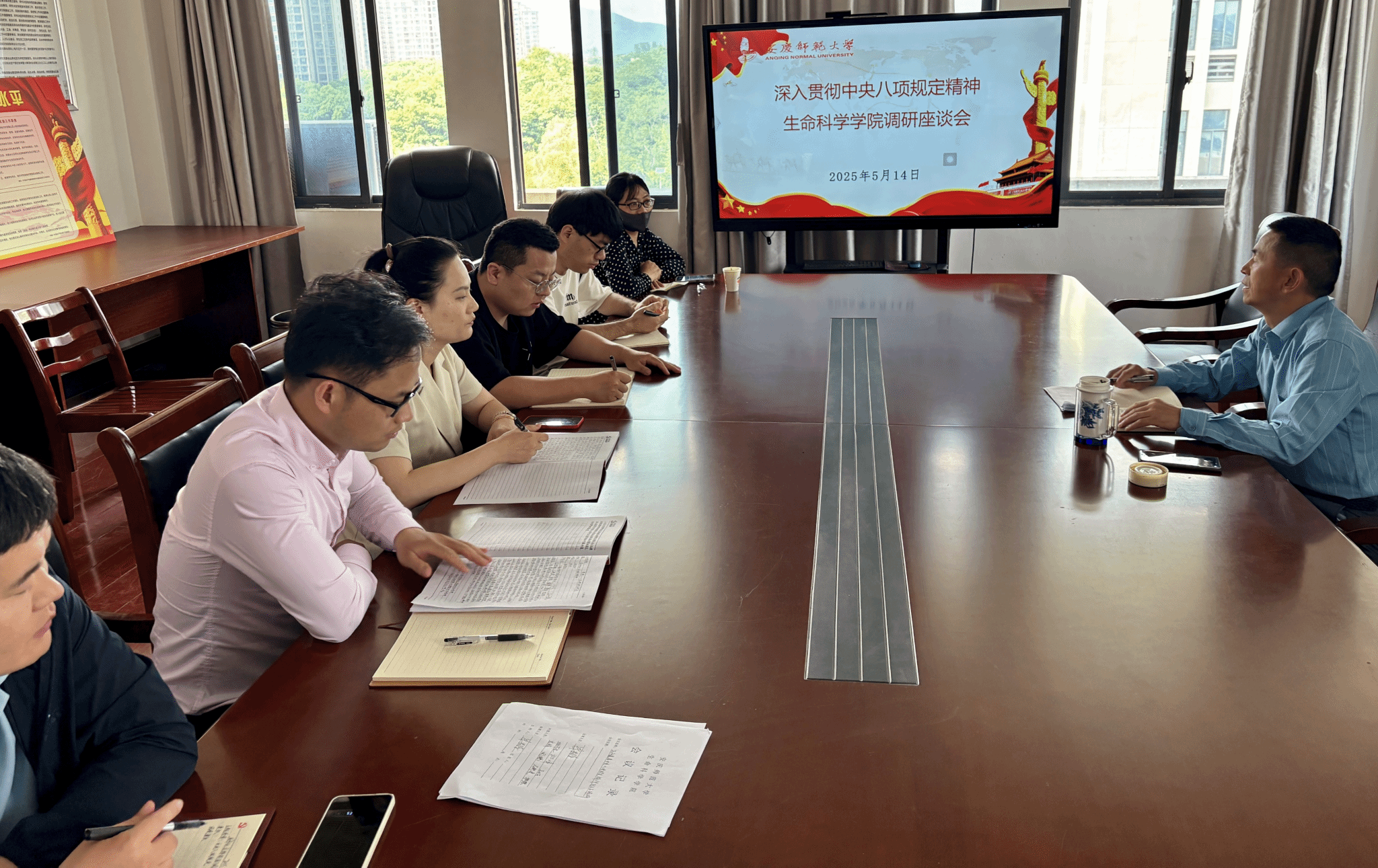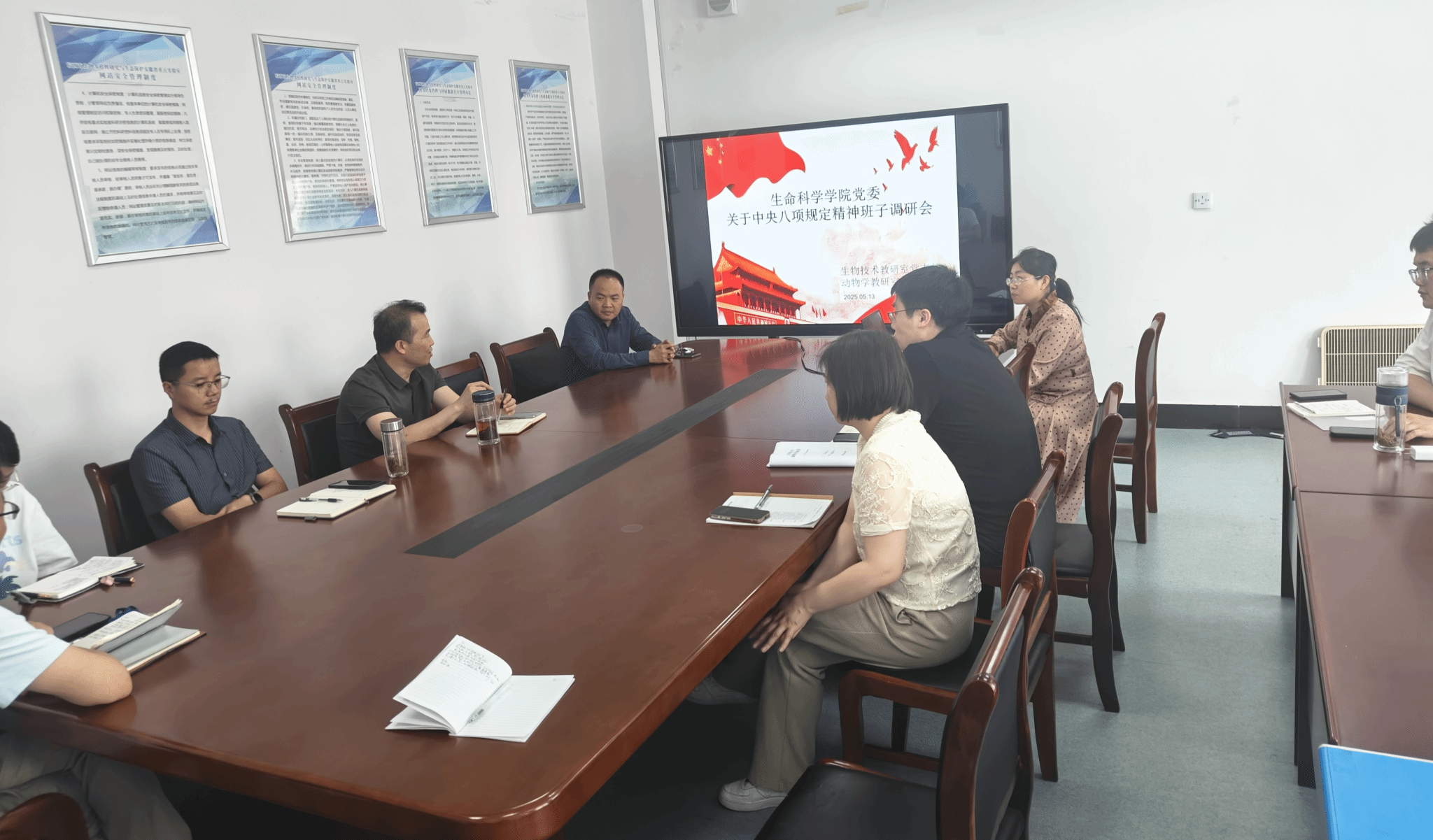 5月12日至14日,tyc5997太阳集团领导班子分别深入到各党支部开展深入贯彻中央八项规定精神学习教育调研,全体党员和教师代表出席座谈会。