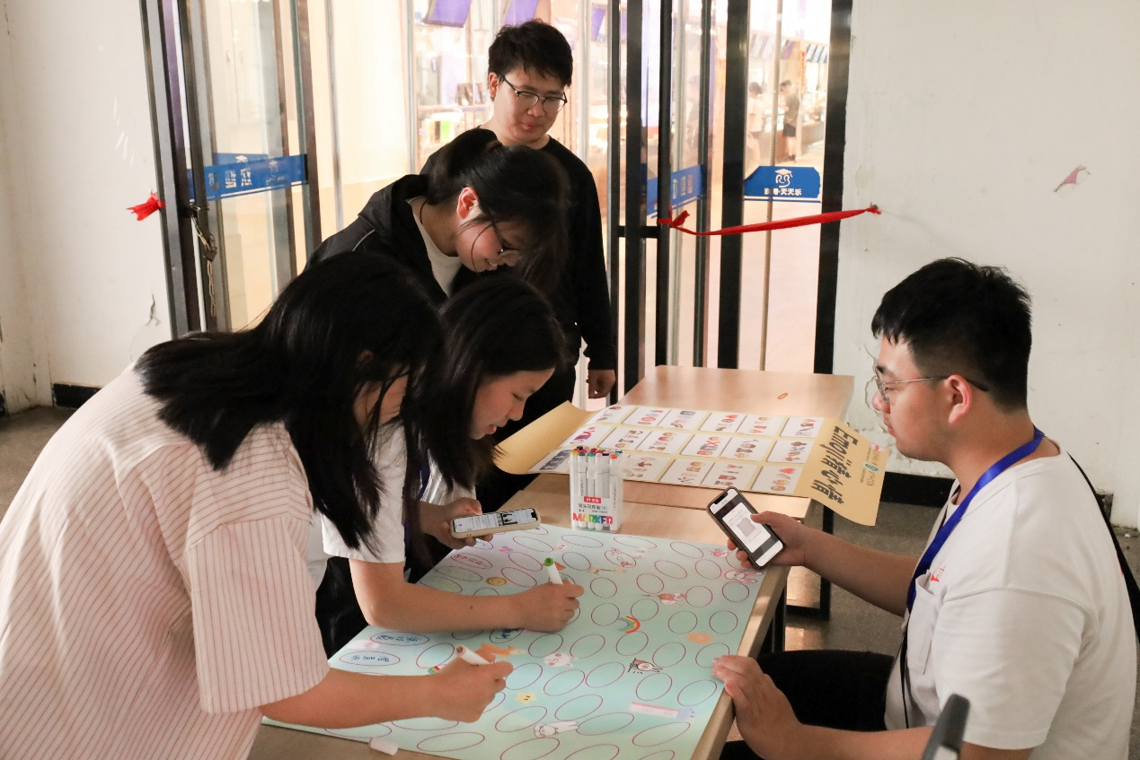 东苑食堂门口,工作人员、生物科学类专业2024(2)班的吴俊翔正在将精心准备的活动海报摆在桌子上。左侧海报上,由天使翅膀、咧嘴笑脸、椰树岛屿、雨伞符号等组成的九宫格引人驻足;右侧“我的幸福泡泡”海报则漂浮着无数彩色泡泡的剪影。“员工们可以通过观察表情九宫格,回答出三个心情宫格,将它们连成一条线,同时还可以在‘我的幸福泡泡’这张海报上写下自己了解的心理学名词。”他表示,后续这张写满心理学名词的海报将会被放在tyc5997太阳集团大厅进行展示,用来宣传心理学知识。