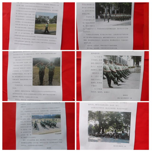 通过前期广泛宣传,新生们报名踊跃,积极递交作品,充分表现出参加活动的兴趣。征文内容丰富多彩,同学们就紧张的军训生活展开了精彩的描述,有写军训生活的酸甜苦辣,有写军训带来的感悟,;摄影作品则形式多样,内容丰富。本次比赛最终收到征文、摄影方面等共计40余份参赛作品。通过大众投票评选,谢雨晴同学获得综合成绩一等奖,陈瑶等同学分获二、三等奖及优秀奖。