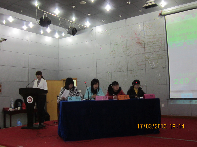 3月17日晚,tyc5997太阳集团第四届班级杯辩论赛决赛在菱湖校区学术报告厅举行。经过前期的初赛,最后进入决赛的是11级生技2班、园林2班、生科1班和生科2班。辩题分别是“网上言论能否代表民意”、 “男性、女性谁才是社会的弱者”。