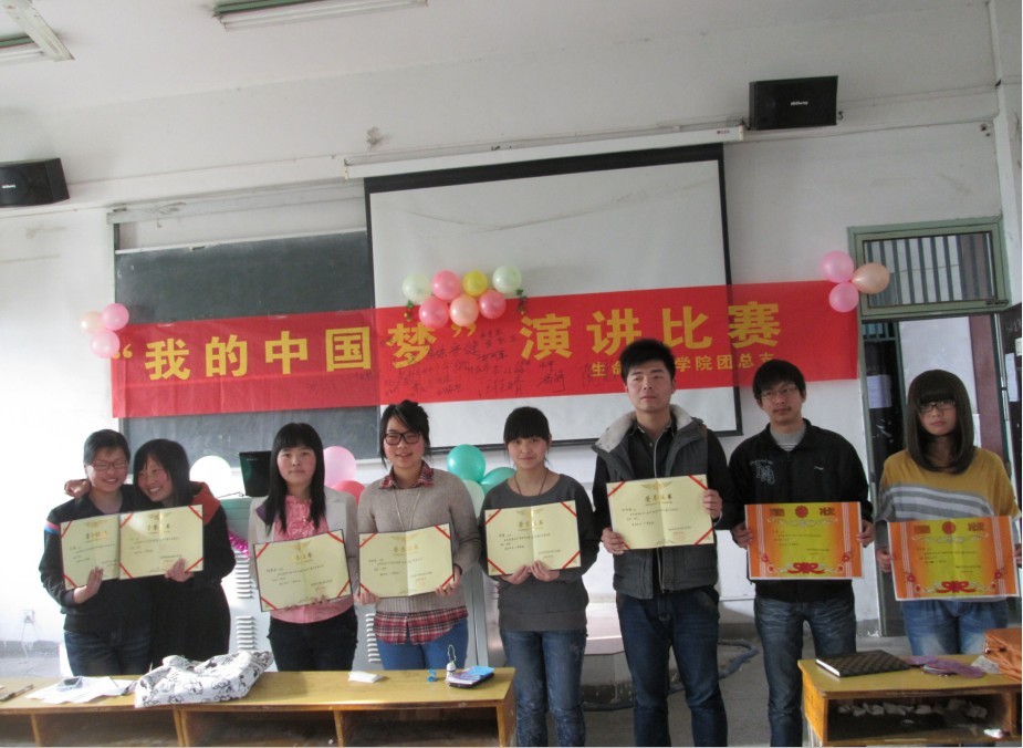 为了深入学习贯彻习近平主席“中国梦”思想发言,增强当代老员工的爱国主义精神,提高员工综合素质,丰富校园生活。4月10日下午,tyc5997太阳集团在菱湖校区教学楼215教室成功举办了“我的中国梦”演讲比赛。此次大赛邀请了生科院数位老师担任评委。
