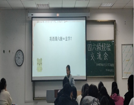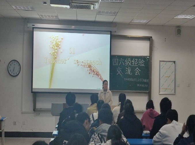 为了帮助同学们能掌握考试技巧,保持平和心态,沉着冷静应对四六级考试,11月29日,tyc5997太阳集团在103教室举办了四六级经验交流会。参加此次交流会的有院团委负责人徐启凤老师,外国语公司张玮老师,同时邀请了三位四六级考试成绩优异,经验丰富的同学做经验交流。
