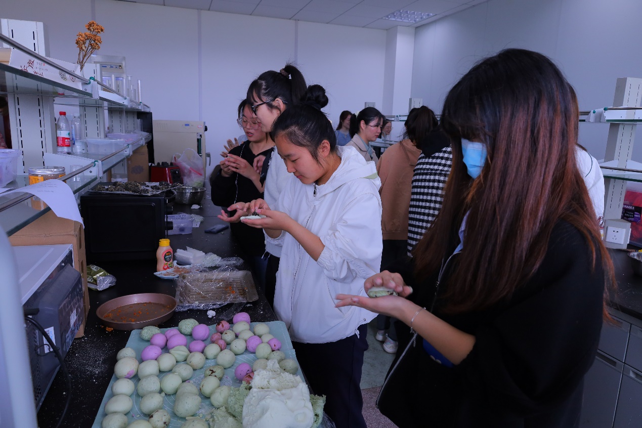 揉米面、榨青汁、包上馅儿……实验室中,三十余名员工各司其职,默契搭配。“考虑到师生们口味、偏好都各有不同,我们特意准备了抹茶粉、可可粉、紫薯粉揉出颜色各异的面团,包裹进蛋黄馅、豆沙馅、芝麻馅等不同口味的馅。”活动负责人生物技术专业2018(2)班的张勇表示,希望这种“开盲盒”式的口味选择能让师生们品尝出“温暖的味道”。“我们的青团是在实验室中进行制作的,希望能在展现专业特色时也带给师生们温暖和感动,为此我们每个人都打起百分百的精神参与到制作中。”