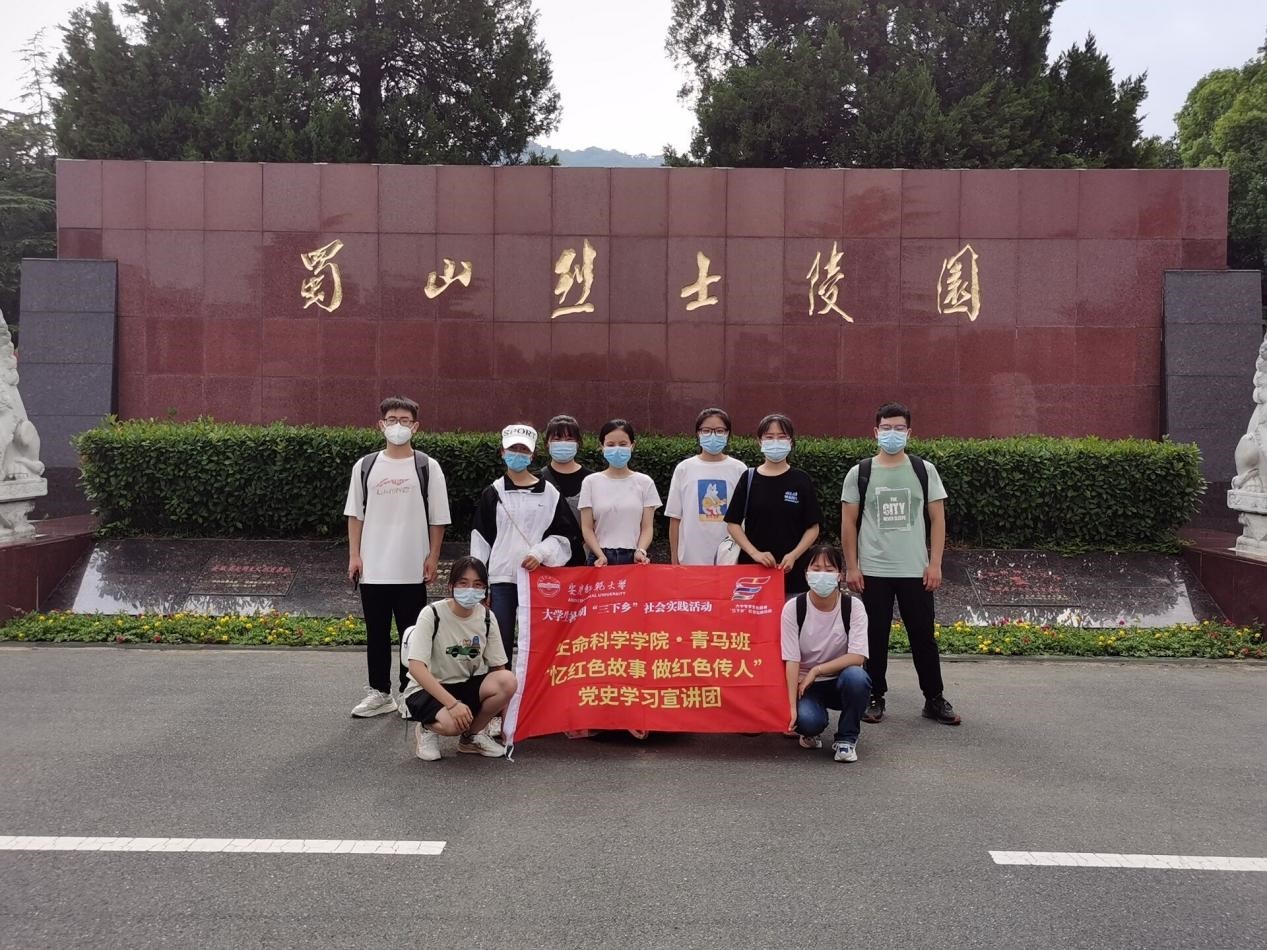 第二站实践团队来到蜀山烈士陵园,作为安徽省规模最大的烈士陵园,自1981年开放以来,年平均接待参观者20万,1990年5月,蜀山烈士陵园被国务院批准为“中国重点烈士纪念建筑物保护单位”,并先后被国家民政部和安徽省人民政府列为中国、安徽省爱国主义教育基地。团队成员瞻仰了烈士陵园纪念碑,学习那段艰苦奋斗的不屈历史。瞻仰烈士陵园的同时,团队成员也参观了安徽革命烈士纪念馆。馆中陈列着全省有代表性的从第一、第二次国内革命战争时期至社会主义建设时期的190位烈士的光辉业绩,成员们感受到革命先烈们的英雄气概,深切体会到现在幸福生活的来之不易。