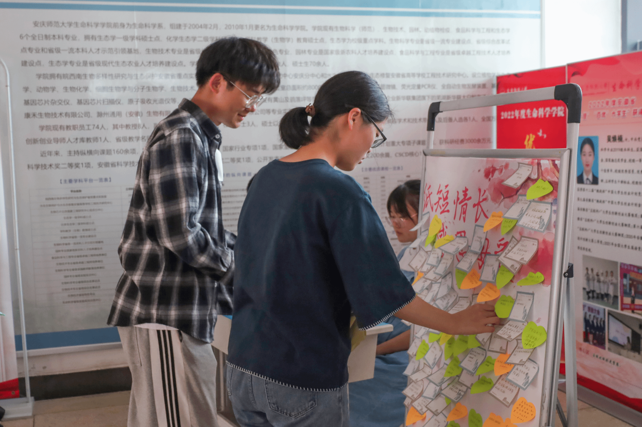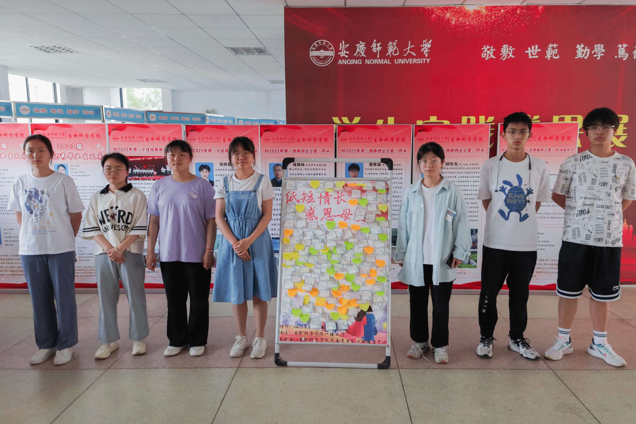 活动结束后,原本洁白的留言板上贴满了各式各样的便签纸,换上了“花衣服”。生物科学类专业2022(2)班的屠琳琳路过活动现场后表示,“纸条虽短,但情意悠长,每张便签纸都承载着对妈妈的满满爱意。”