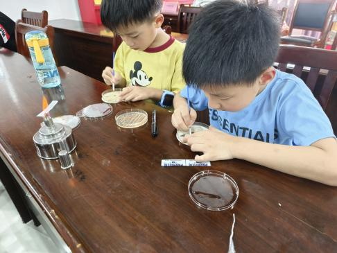 仔细洗手、留下手印,在团队成员的指导下,小孩子们纷纷在培养皿上留下了自己洗手前后的手印。团队成员介绍,孩子们可以通过对比观察培养皿中洗手前洗手后的细菌菌落变化,明白“勤洗手,爱卫生”的重要性,从而了解七步洗手法和世界洗手日,在生活中养成良好的卫生习惯。