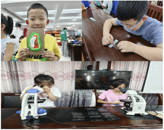 选取颜色、塑形摆放、粘合检验,在孩子们手中,一个个简易的植物细胞模型渐渐成形。此外,他们还进行分组合作,一同制作完成了洋葱鳞叶外表皮细胞的临时装片。