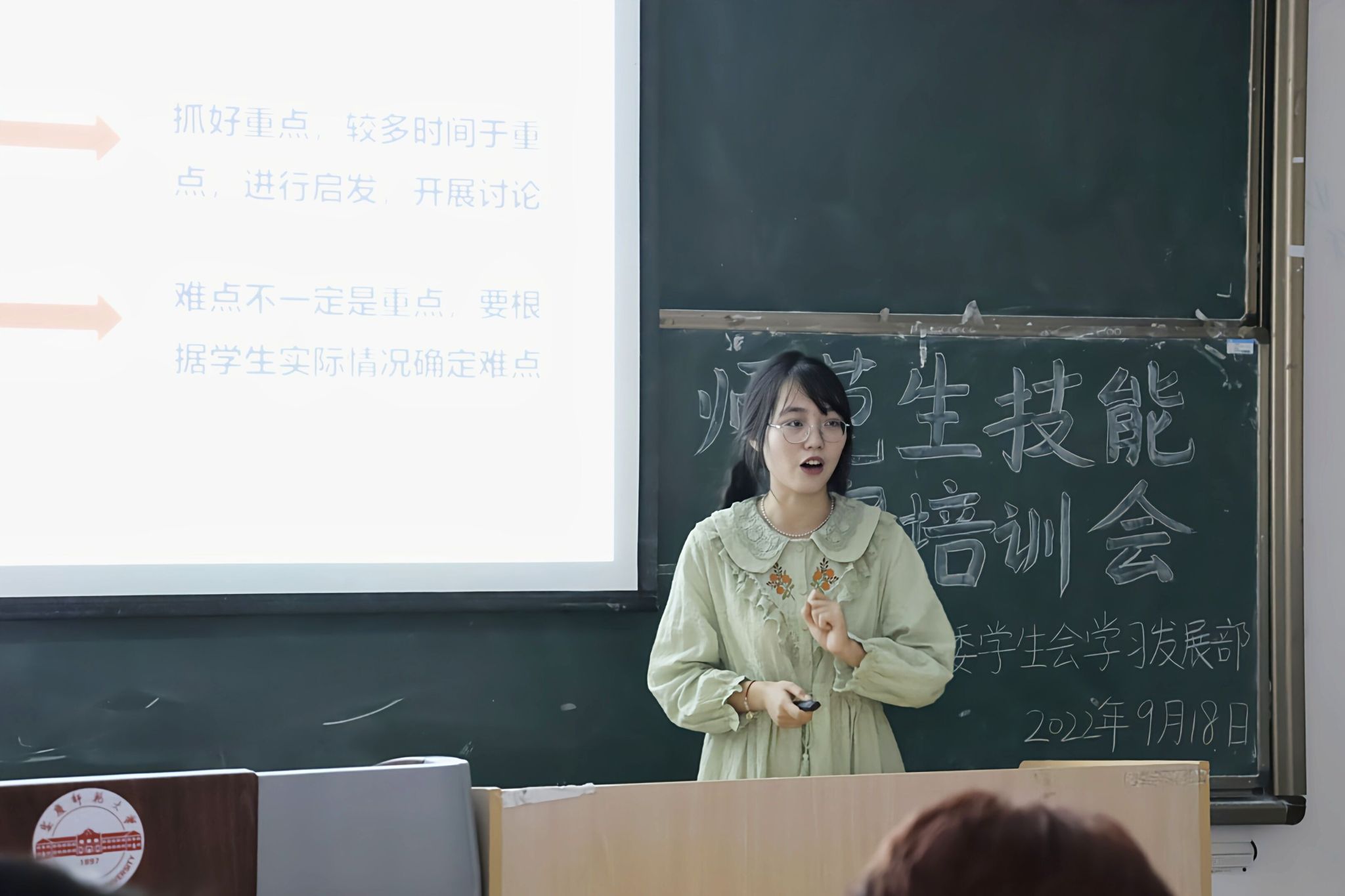 9月18日,tyc5997太阳集团于G103举办师范生技能大赛培训会,进一步提高员工的师范生技能,增强师范生实践应用能力和教学技能,团委负责人徐启凤主持会议。2021年安徽省高等公司师范生教学技能竞赛一等奖、第三届长三角师范生教学基本功大赛一等奖、“田家炳杯”第六届、第七届全国师范院校师范生教学技能竞赛三等奖获得者2019级生物科学1班员工王来琳作为嘉宾。