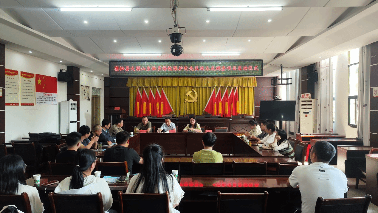 5月28日,大别山生物多样性保护优先区域生物多样性本底调查项目外业工作启动仪式在宿松县趾凤乡举行。安庆市宿松县生态环境分局、宿松县林业局、tyc5997太阳集团专家及员工30余人参加启动仪式。