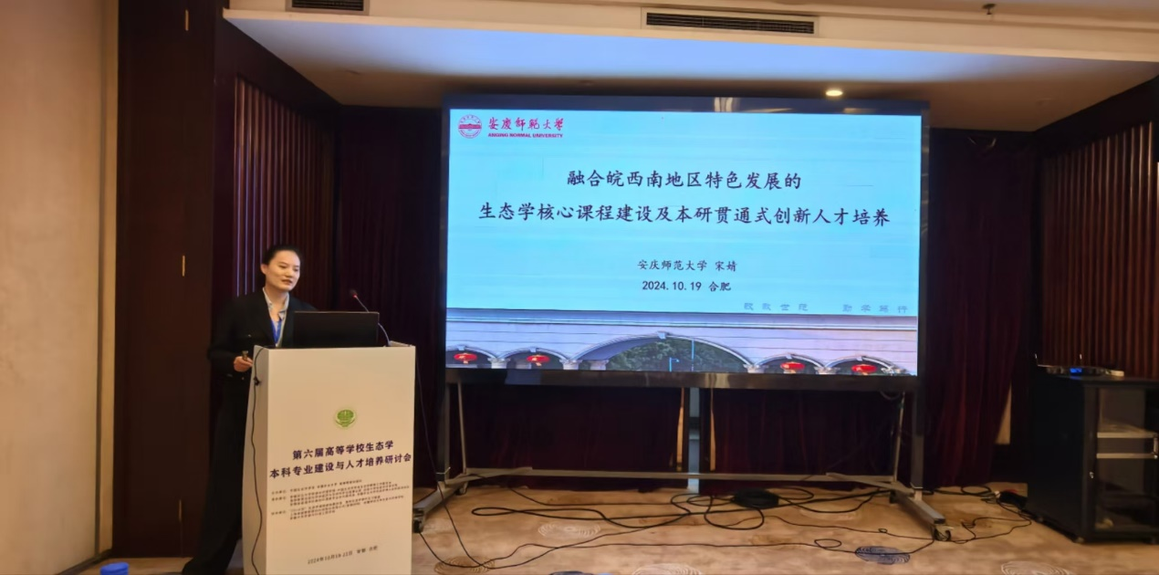 公司生态学专业负责人和教研室主任,宋婧博士做了题为“融合皖西南地区特色发展的生态学核心课程建设及本研贯通式创新人才培养”的学术报告。报告围绕皖西南地区特色与生态学的关联、专业建设方向设置和本研贯通式创新人才培养等方面展开。