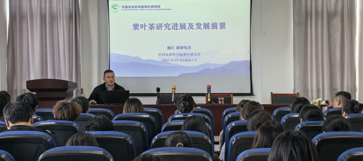 报告会上,施江副研究员以 “紫叶茶研究进展及发展前景” 为题,系统介绍了其团队在紫叶茶特异种质资源挖掘、多酚类代谢机理解析以及加工高值化开发等方面的最新研究成果。他深入浅出地阐述了紫叶茶独特的观赏与保健价值,并分析了其在高附加值茶产品开发及茶旅融合方面的巨大应用潜力,为特色茶树种质资源的创新利用提供了新思路。