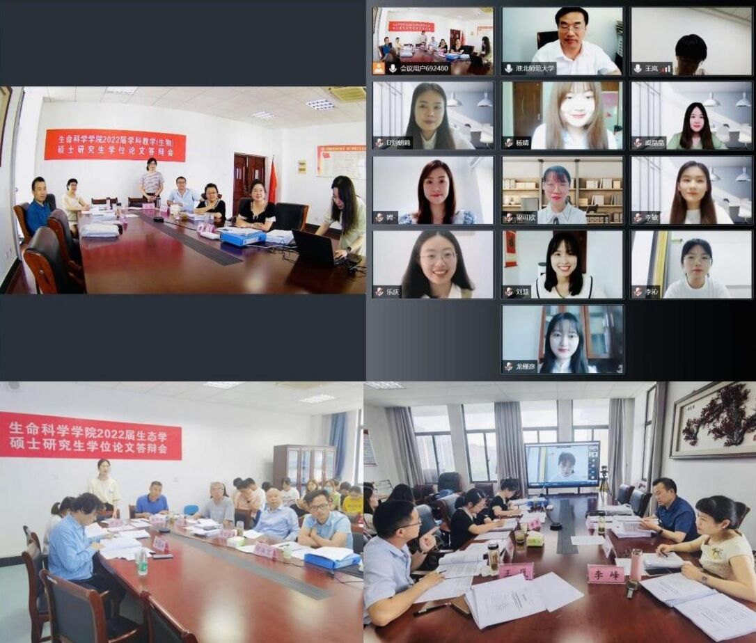 6月1日,tyc5997太阳集团在G411和G402会议室分别举行了2022届生态学和学科教学(生物)硕士研究生学位论文答辩。公司邀请安徽师范老员工态与环境公司严云志教授担任生态学答辩委员会主席,淮北师范老员工命科学公司李峰教授和合肥市第五中学特级教师王岚分别担任学科教学(生物)答辩委员会主席和副主席,公司周多奇教授、吴甘霖教授、于道平教授、魏和平副教授和尹立伟副教授担任生态学答辩委员会委员,吴彦教授、项小燕教授、穆丹教授、李从虎副教授担任学科教学(生物)答辩委员会委员。2019级生态学7名研究生和2020级学科教学(生物)11名研究生通过线下或线上方式参加了答辩,全体在校硕士研究生和研究生导师到场观摩学习。