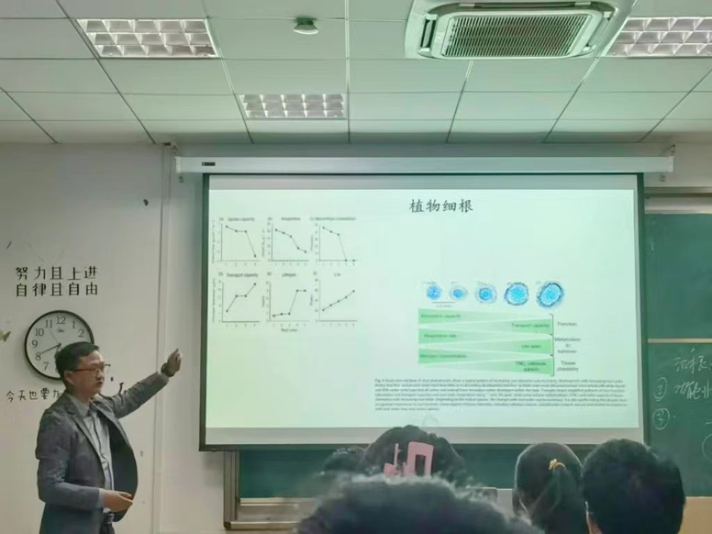 本次讲座杨邵博士结合植物学和生态学专业基础理论知识,向大家介绍了植物细根在陆地生态系统水分、养分、碳循环中扮演的重要角色;并从植物进化角度,阐述了植物从水生生态系统到陆地生态系统的发展过程中,植物根系发挥的重要作用。