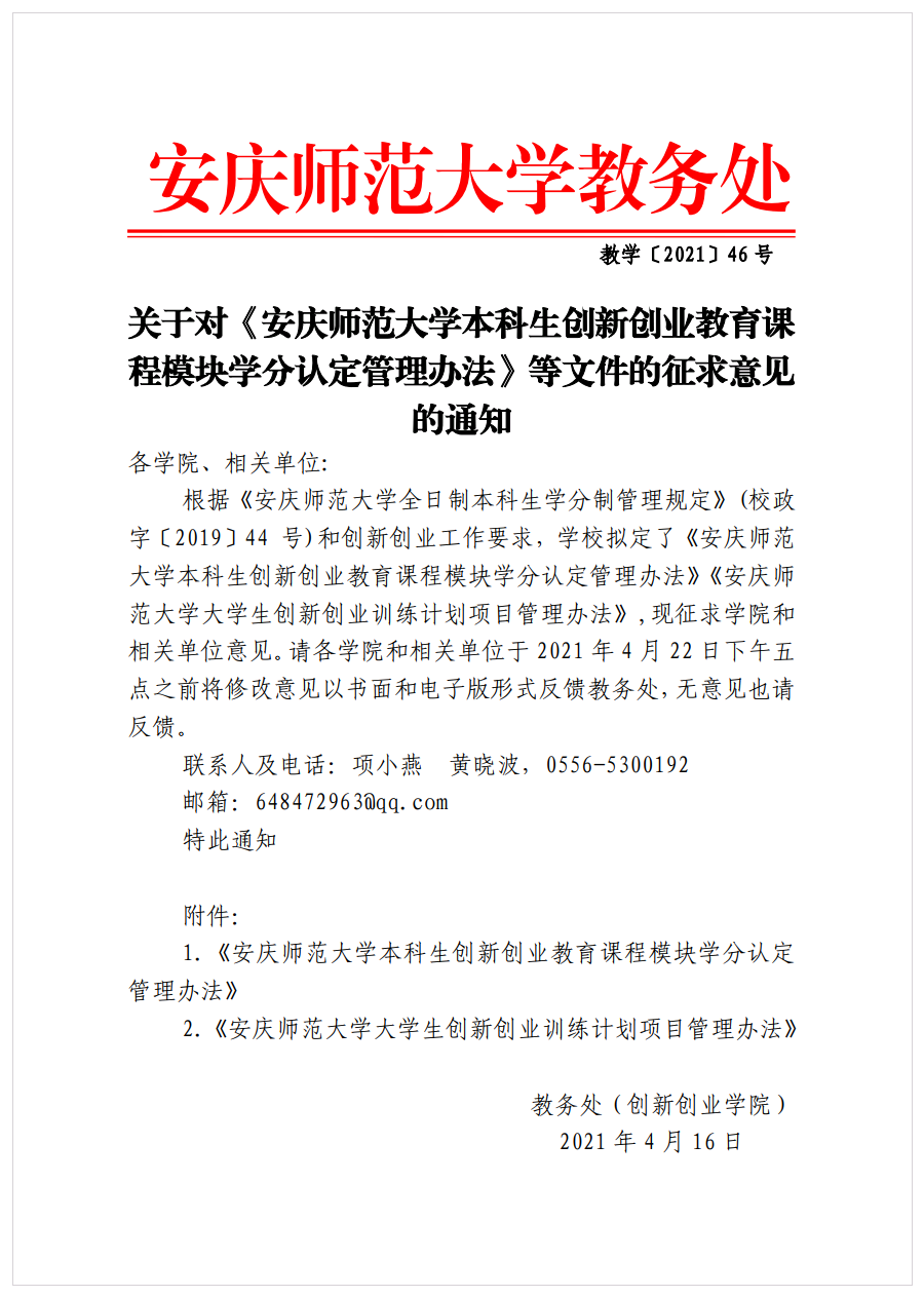 关于对《tyc5997太阳集团本科生创新创业教育课程模块学分认定管理办法》等文件的征求意见的通知