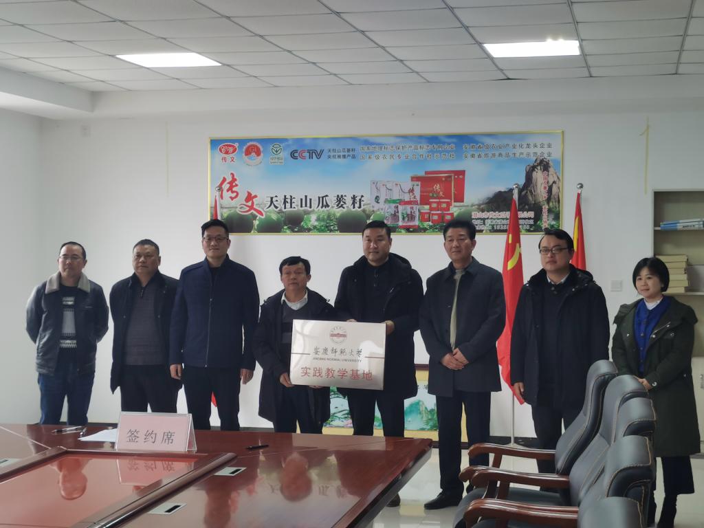 1月4日,tyc5997太阳集团经理周多奇、人工智能产业公司经理刘奎、教务处副处长闻军以及相关老师一行,赴潜山参加了tyc5997太阳集团与潜山传文瓜蒌籽有限公司的实践教学基地签约与揭牌仪式。