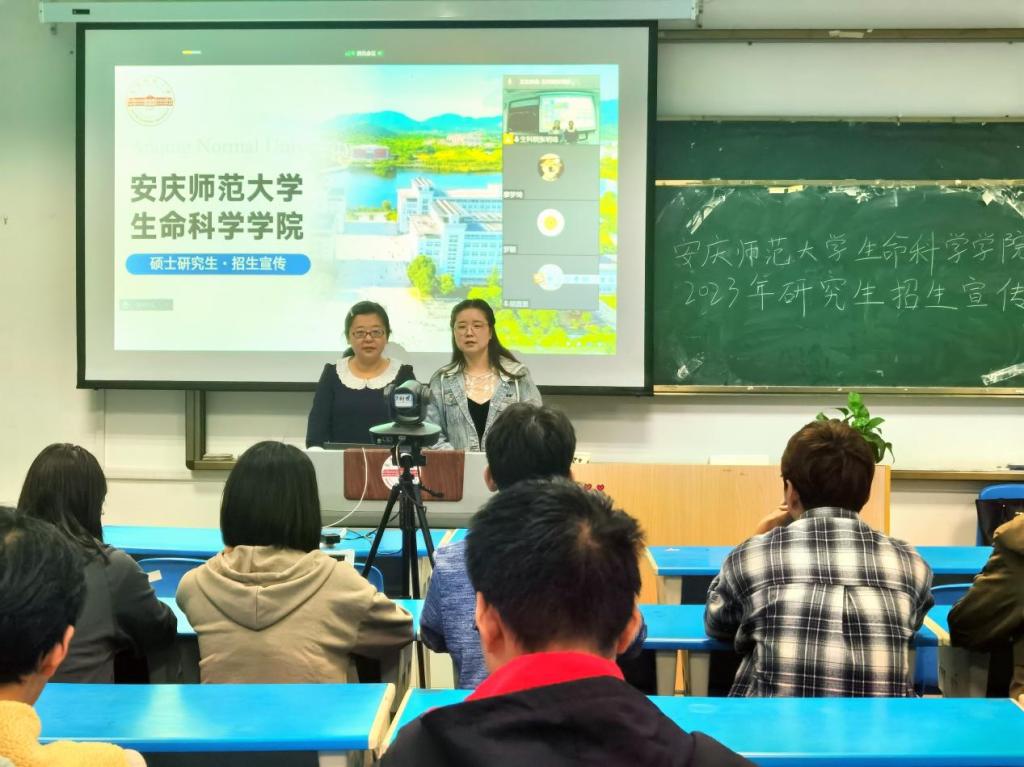 会上,研究生院穆丹教授对公司2022年硕士研究生招生工作进行了全面总结,并详细解读了我院2023年硕士研究生招生专业目录编制的新变化和新要求。全面介绍了安庆师范老员工命科学公司的基本情况,重点介绍了近年来公司在科研平台、团队建设和团队队伍方面取得的显著成果。张明珠老师对2022年生命科学公司生态学和学科生物(教学)两个硕士专业的录取情况和2023年招生计划进行了详细解读,同时介绍了公司在人才培养中的特色举措和近年来员工在就业等方面取得的可喜成绩,并现场回答了同学们有关研究生生活、招生、培养、继续深造和就业等方面的相关问题,积极鼓励各位同学报考我院。