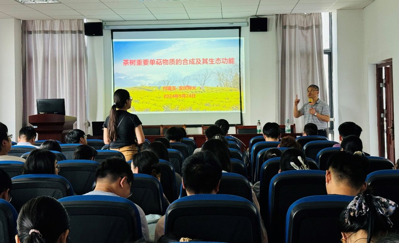 报告内容丰富多彩,形象生动,让师生们了解到挥发性的单萜和倍半萜不仅是茶树间的化学信号分子,更是茶树与昆虫间交流的重要媒介,这些物质在茶树的防御反应中扮演着举足轻重的角色。付建玉研究员的学术分享为相关专业的教师们提供了新的研究方向,同时也为研究生和本科生们打开了新的学习视野,深受启发。