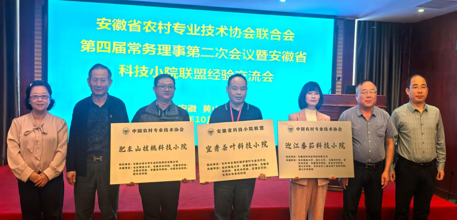 交流会上,对中国农村专业技术协会同意设立的安徽省30家科技小院进行了授牌仪式,其中,由公司牵头建设的“安徽肥东山核桃科技小院”和“安徽迎江番茄科技小院”被授予国家级科技小院、“安徽宜秀茶叶技小院”被授予省级科技小院。这是公司首次获批2个国家级科技小院和1个省级科技小院,是校深化人才培养改革、精准服务地方产业发展的新突破,成为公司服务大别山革命老区振兴“产教融合样板”。