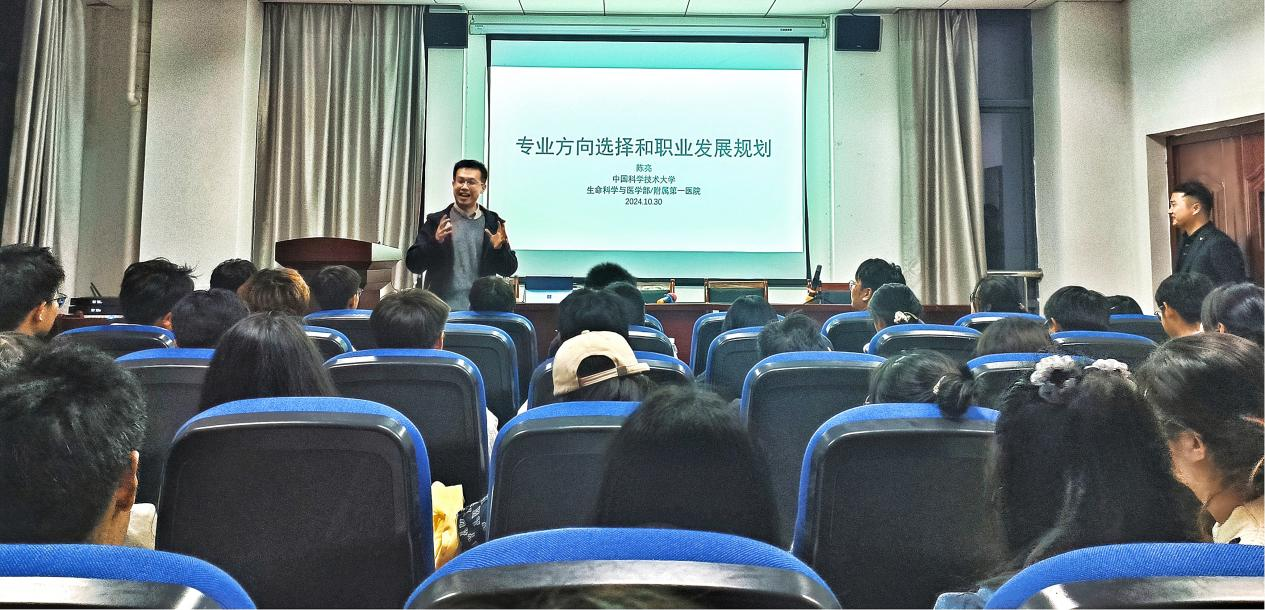 10月30日晚上,中国科学技术大学研究院及附属第一医院双聘研究员陈亮博士应tyc5997太阳集团邀请来公司作了题为《未来专业方向选择和职业发展规划》的学术讲座。讲座由tyc5997太阳集团科研秘书黄欣老师主持,公司部分研究生、本科生聆听了报告。