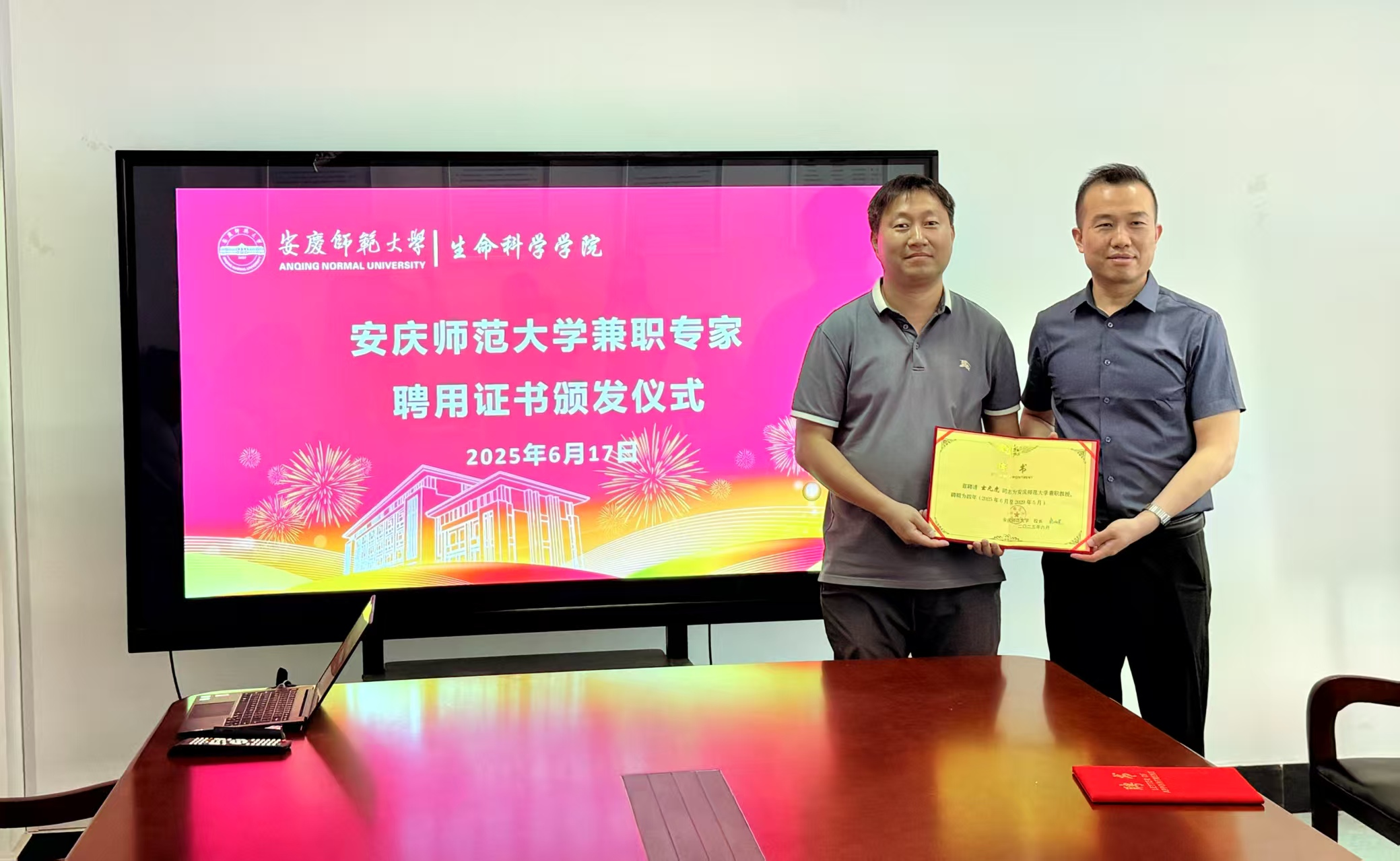 报告会后,公司举办了tyc5997太阳集团兼职专家聘用证书颁发仪式,由吴彦经理主持,聘请玄元虎同志为tyc5997太阳集团兼职教授。