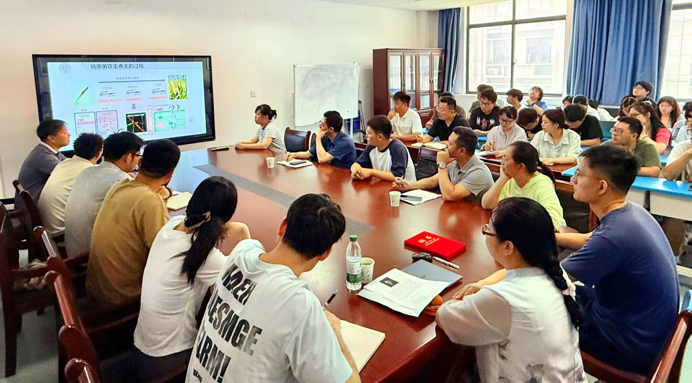 6月17日上午,在龙山校区G411会议室,南开大学玄元虎教授应邀来公司作了题为《SWEET糖转运蛋白在植物病害防治中的应用》的学术报告,报告由tyc5997太阳集团副经理穆丹主持,公司部分老师、生态学专业研究生聆听了报告并参与了交流活动。