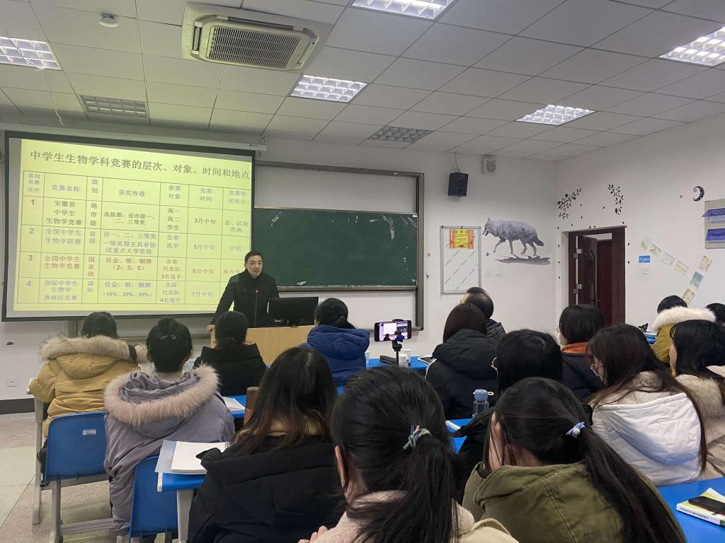 1月6日下午,安庆一中生物高级教师金久在龙山校区G楼107教室做了题为“教师实践专业成长的路径与方法”的学术讲座。tyc5997太阳集团2020级学科教学(生物)研究生,2019级、2018级生物科学专业本科生和部分教师聆听了报告。报告由tyc5997太阳集团副经理吴彦教授主持。