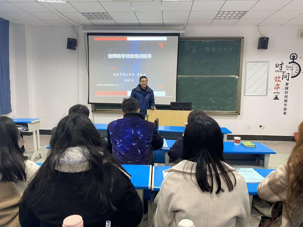 12月2日下午2:00,安庆二中正高级生物教师苏政方在龙山校区G楼105教室做了题为“教学技能培训指导”的学术讲座。tyc5997太阳集团2020级学科教学(生物)研究生,2019级、2018级生物科学专业本科生和部分教师聆听了报告。报告由tyc5997太阳集团副经理吴彦教授主持。