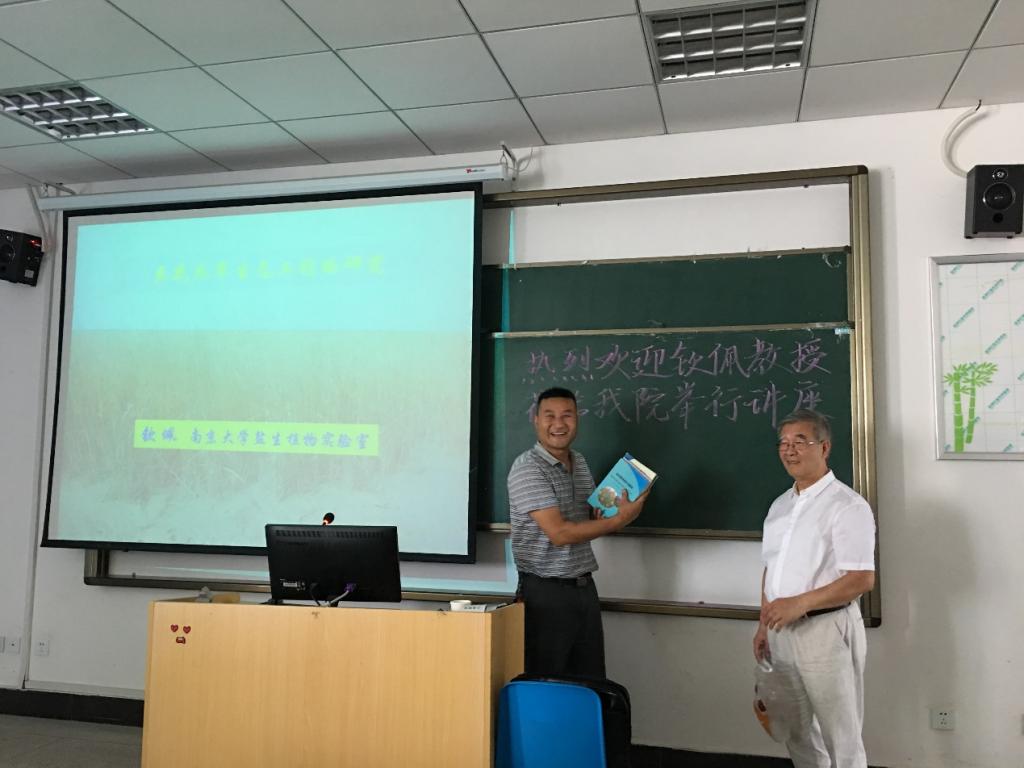 在本次讲座中,钦教授结合自己多年的科研实践,从互花米草的引种、互花米草问题与米草生态工程和互花米草生态工程的国内外影响等三个方面展开,深入浅出、形象生动的向大家阐述了米草生态工程与海滨盐土农业生态工程原创理论与技术。钦佩教授还把自己主编的《生态工程学》(第三版)、《海滨系统生态学》、《生物质能产业生态工程》、《海滨锦葵的应用研究》4部专著赠送tyc5997太阳集团,供师生借阅学习。