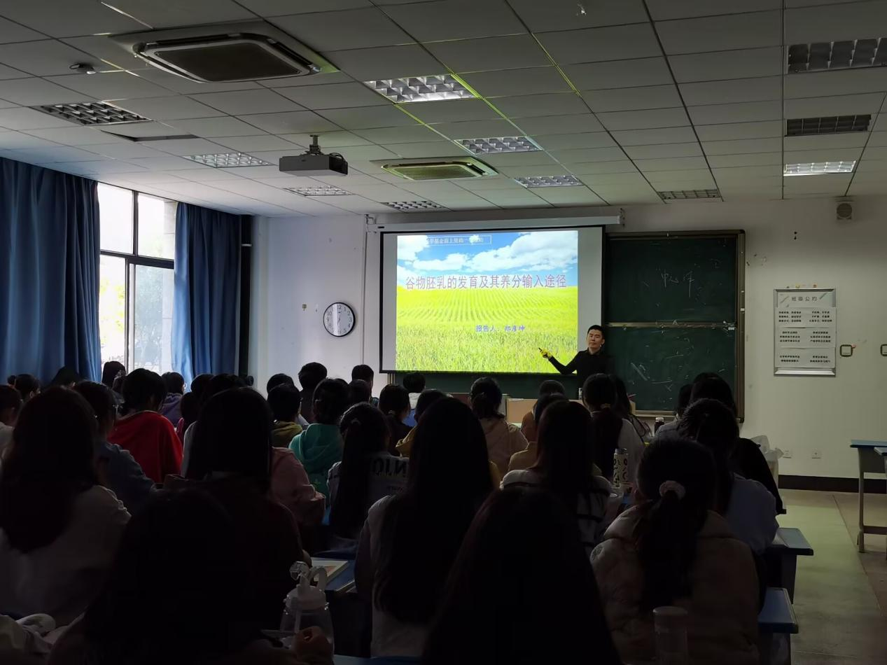 2022年10月29日上午,tyc5997太阳集团郑彦坤博士在G103教室作了题为"谷物胚乳的发育及其养分输入途径"的学术报告。郑彦坤博士结合多年来在谷物胚乳发育方面的研究,从水稻、小麦、高粱和玉米等胚乳发育的研究意义入手,详细阐述了谷物颖果内的养分运输途径,以及不同胚乳细胞的亚细胞结构及其功能特性。